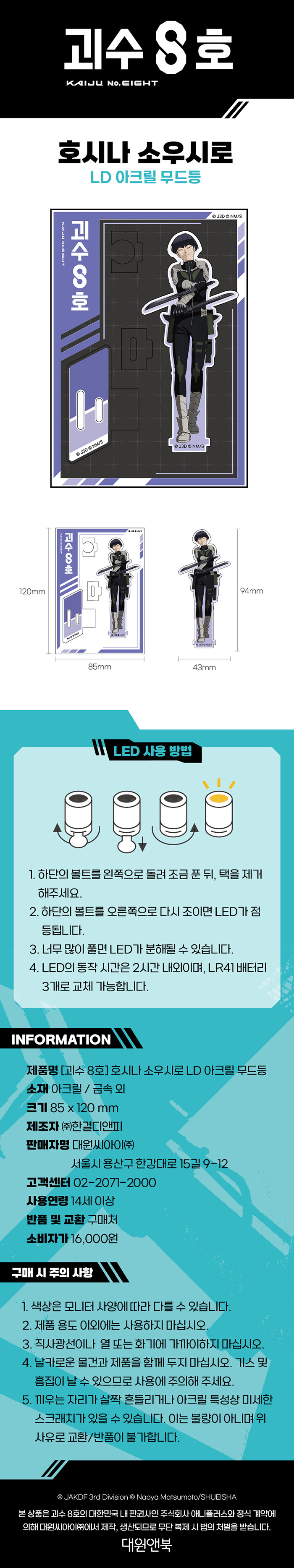 괴수 8호 호시나 소우시로 LD 아크릴 무드등