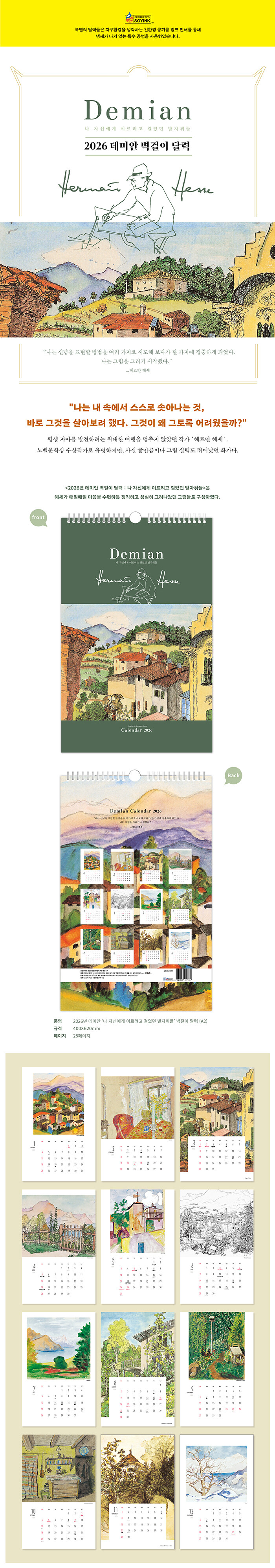 2026년 헤르만 헤세의 나 자신에게 이르려고 걸었던 발자취들 벽걸이달력 (A2)