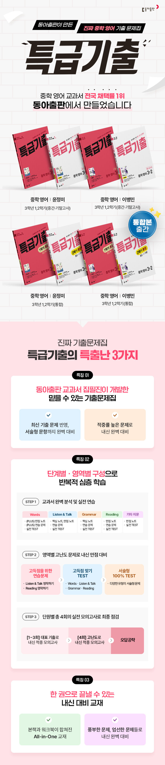 - STEP B: Words / Listen and Talk / Grammar / Reading / 서술형 100% TEST