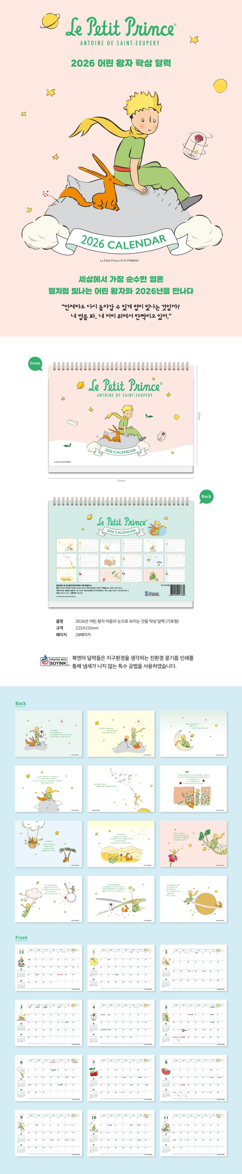 2026년 어린왕자 탁상달력 (가로형)